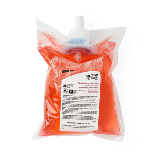 SOAP LUXURY FOAM HEALTHGUARD 1000 ML Effective handwashing with thick, rich, foaming soapPleasant tropicalscentFor use with Medline dispensers MSC9941GRA and MSC9941BLK Foam, the Easy Solution for Every Hand Soap Need! Medline's foam system offers a clean contemporary dispenser with a unique push pad that dispenses 0.75 ml of rich foam per push vs. 1.5 ml per push for most bag-in-box systems. This will provide twice the number of hand washings per 1000 ml bag. In addition to the dynamic design we offer three different formulas ALL producing thick, rich foam. Luxury Hand Soap with a pleasant tropical scent which is perfect for general purpose applications. 1000 ml Bag Unit: CS