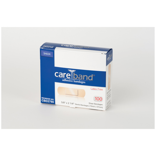 ASO CAREBAND SHEER ADHESIVE STRIP BANDAGES - Sheer Junior Strips, 5/8" x 2", Latex Free (LF), 100/bx, 24 bx/cs | Quantity - 1x CS