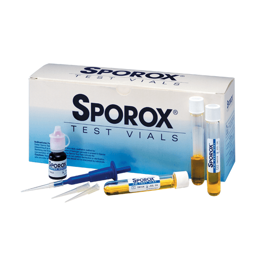 Now, a new and faster way to test your Sporox® Sterilizing and Disinfecting Solution. Test vials provide a rapid, convenient qualitative means of indicating whether effective concentrations of hydrogen peroxide are present in your Sporox® II solution. Kit includes a test vial containing a reagent that when mixed with a drop of the indicator solution and a sample of the Sporox® II solution being tested will change color after two minutes to determine if the solution is still effective.- Sporox Test Vials Intro Kit: (30) Test Vials, Bottle of Indicator Solution, Pipettor, (30) Disposable Pipette Tips, 1 kit/bx (Item is considered HAZMAT and cannot ship via Air or to AK, GU, HI, MP, PR, VI) Stock Item