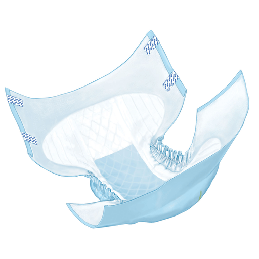 Feature padded wings for greater comfort and absorbency. Full absorbent mat brief is designed for persons restricted by total incontinence, with leg gathers for superior fit and containment. Poly-Fresh super-absorbent polymer provides maximum absorbency. Extra soft stay-dry facing and moisture-proof backing enhance patient comfort. Oversized tape tabs provide a secure fit. Blue dryness strip for optimum skin protection. Diamond and linear embossing provides maximum pad stability and utilization.- Adult Briefs, X-Large, 59"-64", Beige, 15/bg, 4 bg/cs(Item on Manufacturer Backorder - Inventory Limited when Available) Stock Item