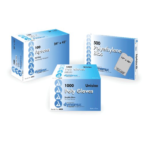 DYNAREX POLYETHYLENE BIBS - Bib, 3" Crumb-Catch Pocket, 15" x 20", 500/bx, 4 bx/cs | Quantity - 1x CS